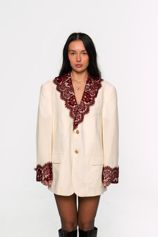 Cream Lace trimmed Blazer